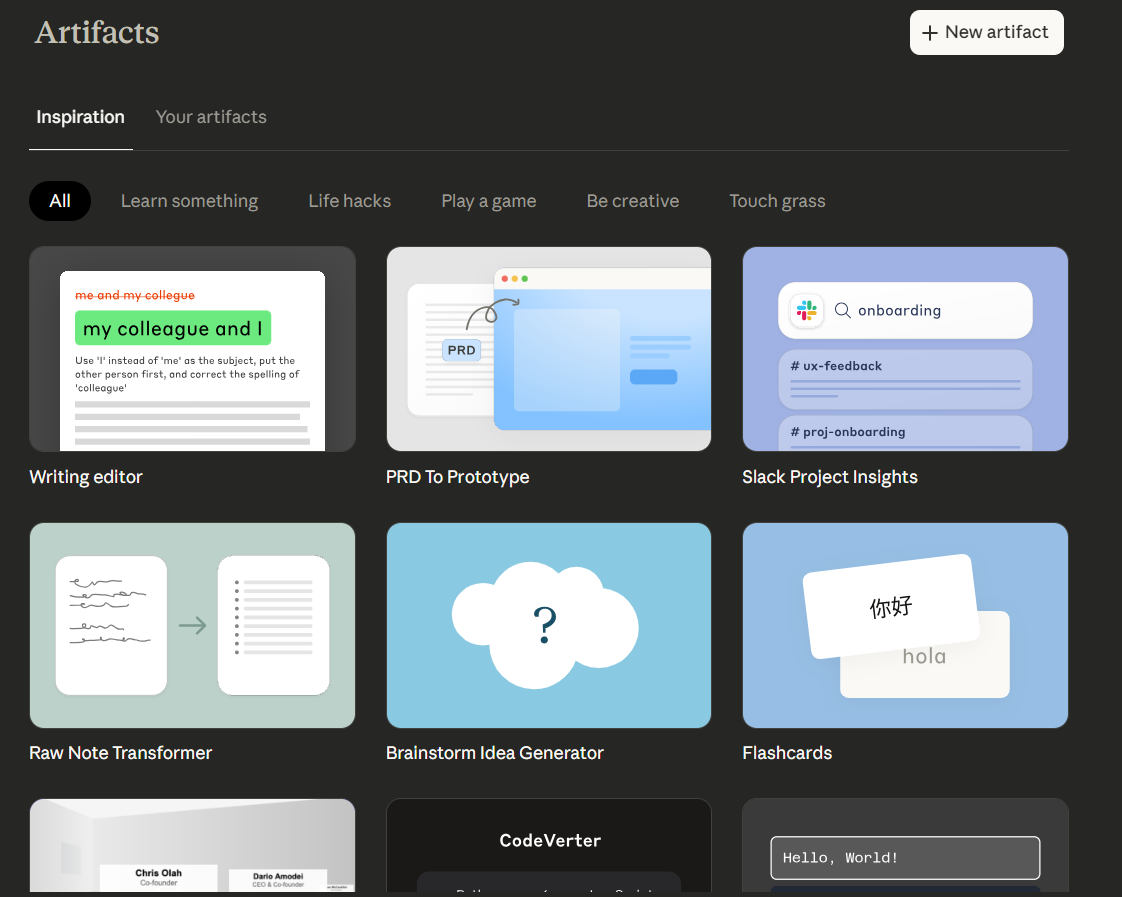 This morning, I browsed through some Claude Artifacts and discovered that several other no-coders have used Claude to create apps that are publicly available through Claude. These apps are called artifacts.