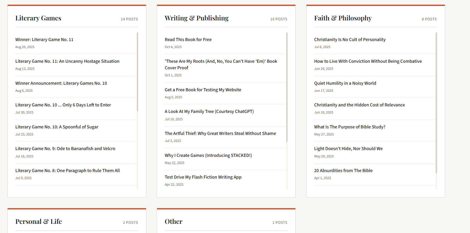 What if one wanted to filter an account’s content by category and see it in a columned magazine-style layout?