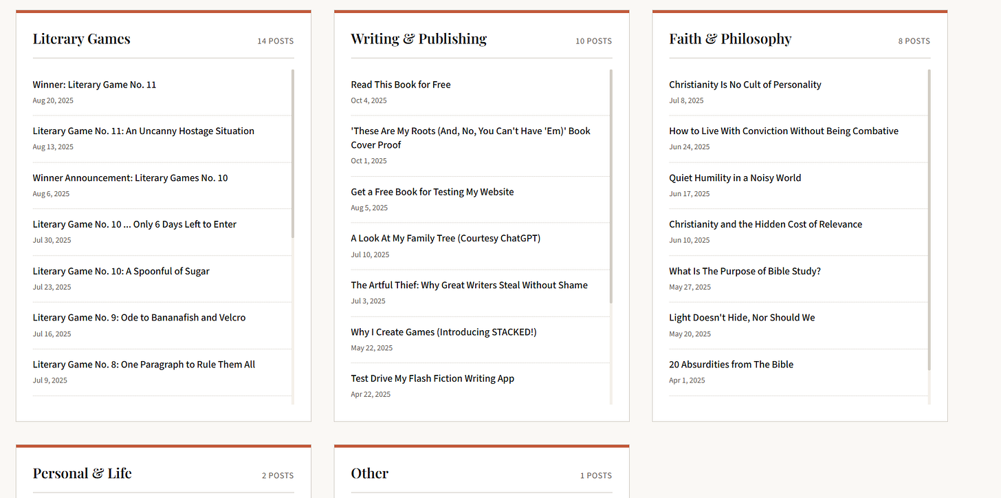 As you can see, I can view all the feeds in one panel, narrow the field to just one category, or focus only on a single feed if I want to see the latest content published by a single author, website, platform, or newsletter. Not bad for less than a half hour’s work.